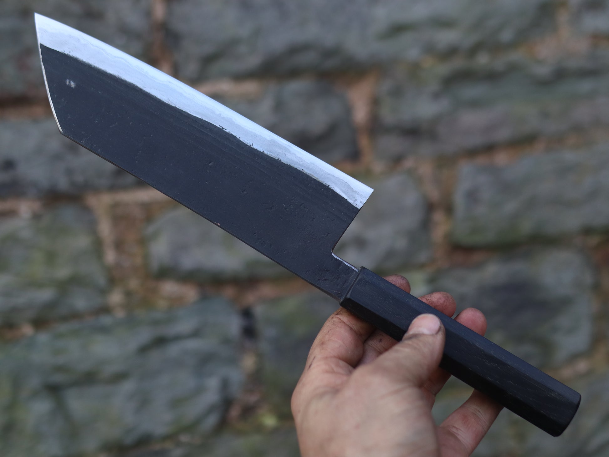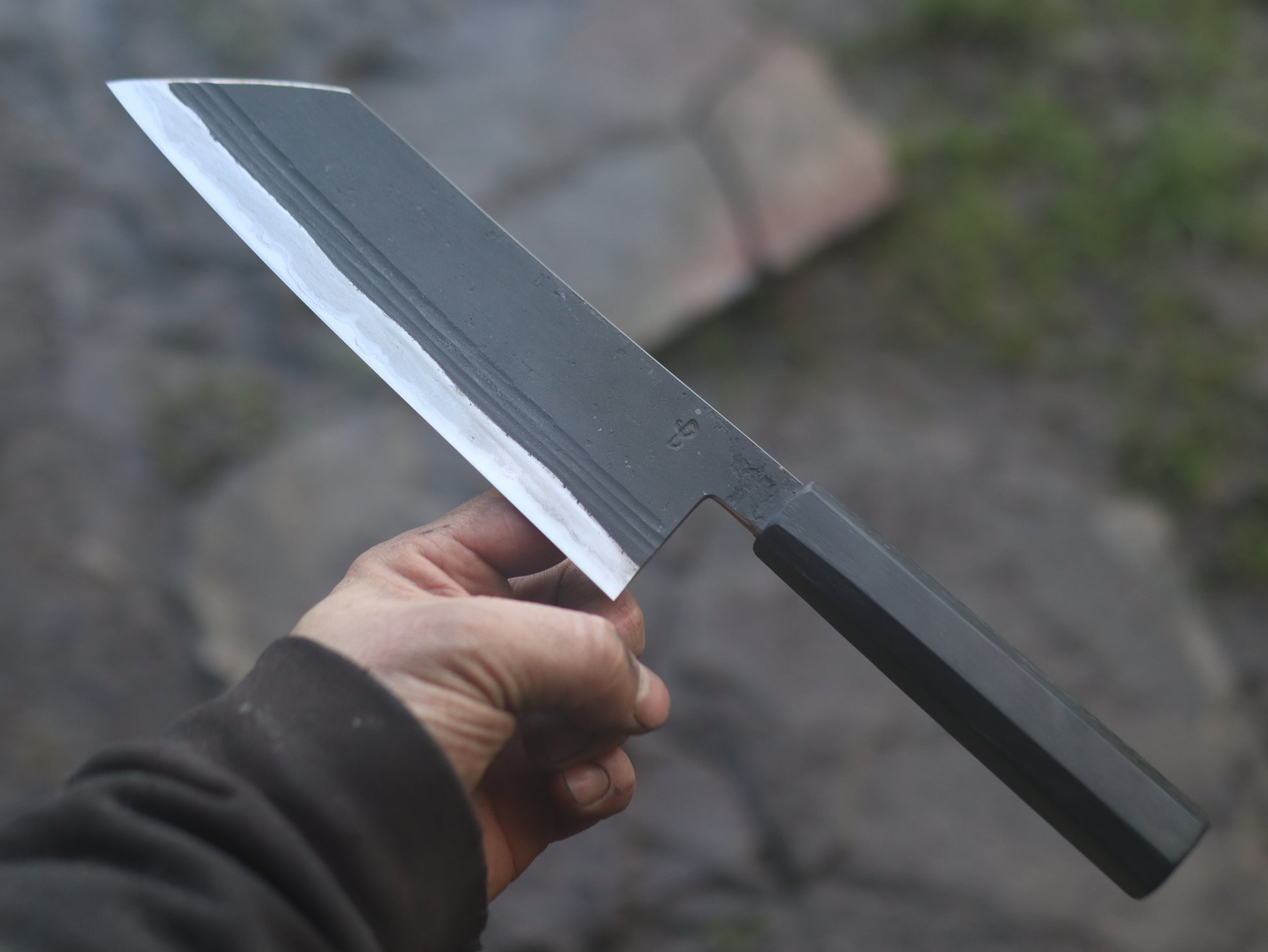 This knife has its bevels polished out using natural whetstones, This process means the upkeep of the blade should be significantly easier especially if you know your way around a whetstone. Flattening the bevels and refining them can be a chore in the initial stages so I’ve done the groundwork for you so it’ll be nice to take to the stones for your polishing pleasure.