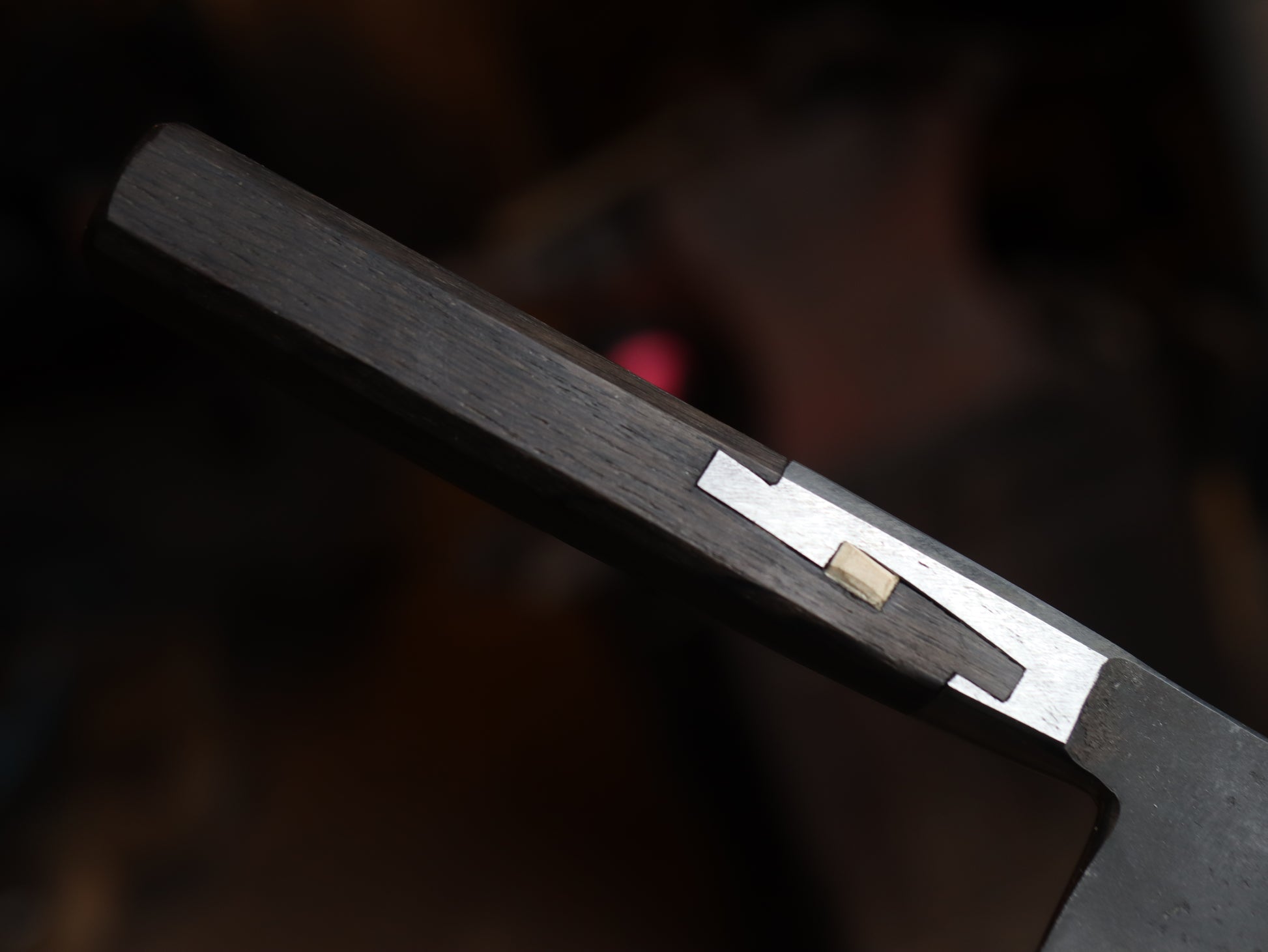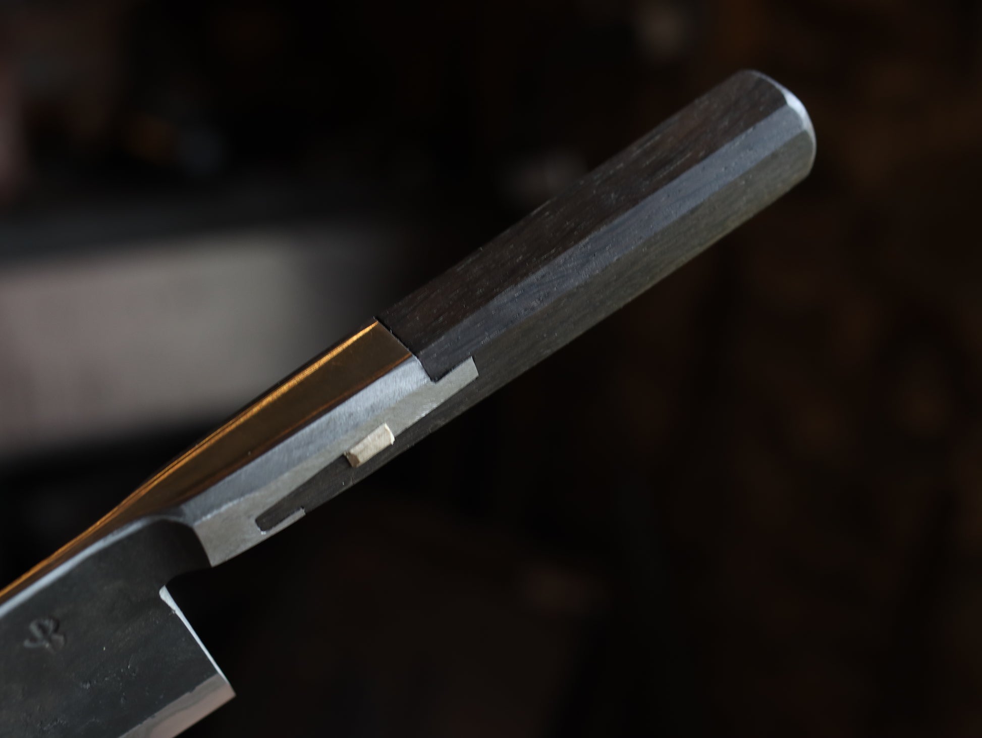 I could waffle in about how this knives bolster is inspired by Japanese joinery, but I won’t, ok I will a little, it was another idea that needed to be out of my head and into the world, it required a fair bit of patience with a bunch of files and chisels but I think it was absolutely worth it, I might even make some more. The sides and chamfers on the bolster have been finished using a smooth cut file as a nod to how the whole thing was shaped. The timber was cut using saws chisels etc because I’m a real craftsman see